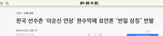 韩国《朝鲜日报》:韩国选手村(让人)“联想到李舜臣”的横幅被日本媒体斥为“反日象征”