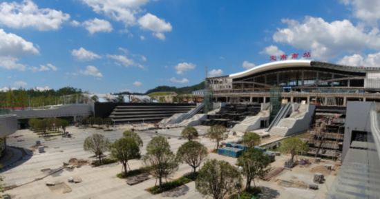 据定南南站高铁新区项目负责人刘慧婷介绍,高铁新区总规划面积3.5平方公里,项目总投资达8.38亿元,主要包括站前广场及道路建设,目前主体工程已基本完工,预计今年8月份将全面完成建设任务,12月全面通车。