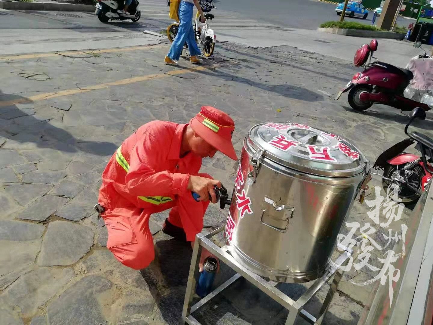 做好事不难,坚持做好事难。为了让爱心茶水点一直开下去,凌万兵和王峰决定将茶水摊迁址到皮市街,“因为王峰在皮市街巷子里开了一家店,这样茶水点每天烧水供应方便点。”凌万兵说,这个夏天,希望通过一桶桶茶水不间断供应,一起传递爱心和正能量。“事情虽小,但去做了,一定会有意义,我们会努力坚持下去。”