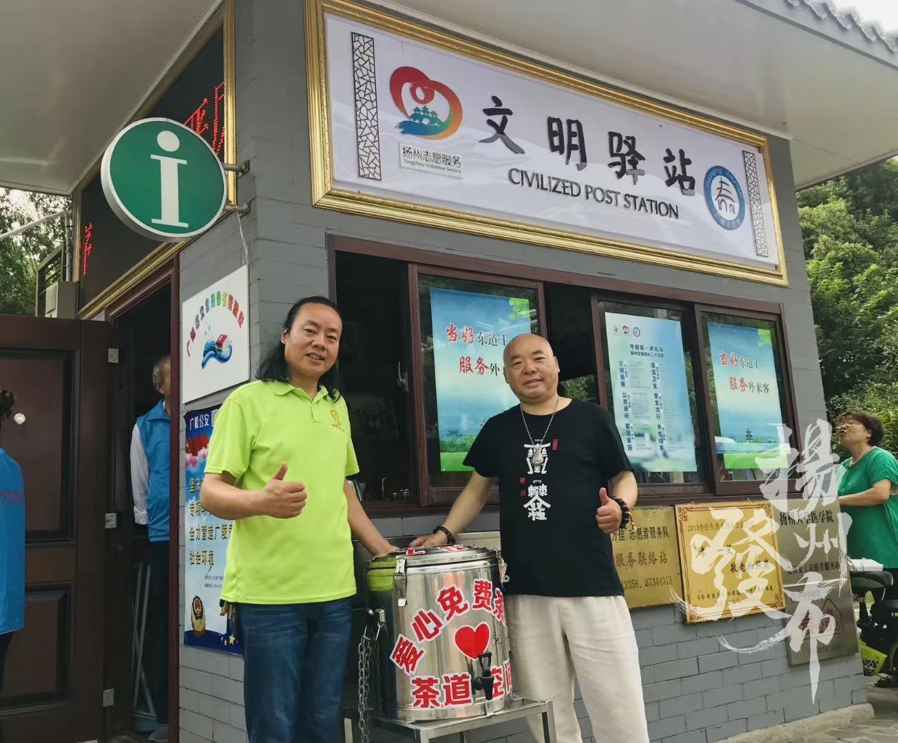 据了解,该爱心饮茶点由我市曾荣获“中国好人”的凌万兵和茶道空间主人王峰发起。“这个茶水点原来设在文昌阁文明驿站,今天刚刚迁址到皮市街。”凌万兵告诉记者,2019年盛夏,为了给高温下的社会工作者、外地游客等需要饮水的群体提供茶水,解决燃眉之急,他和王峰在一次聚会中灵机一动,决定在文昌阁文明驿站推出爱心茶水点。