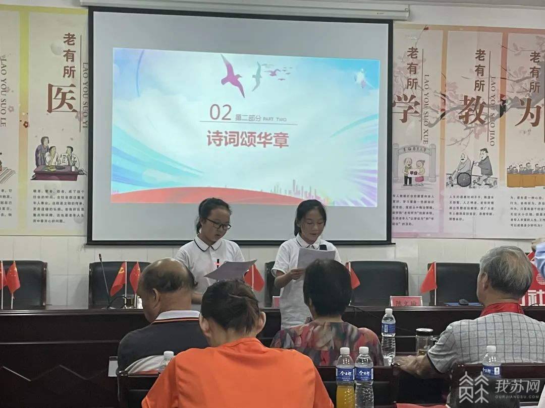 本次活动共分为颂歌献给党、诗词颂华章、红史耀党旗、初心担使命以及童心永向党五个篇章。活动开篇,全体社区青少年以一首《没有共产党就没有新中国》拉开了本次活动的序幕,一阵阵铿锵的歌声,一张张活力的笑脸,燃起了现场每一位党员的精神之火。