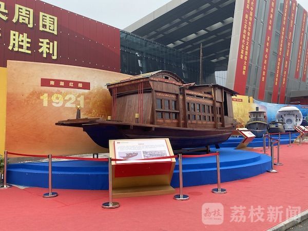 本次历史展设置了室外展区,一进展区就会被一个个模型所吸引。南湖红船、东线“渡江第一帆”木船、“京电号”小火轮、无锡春雷制造厂制造的水泥船、蛟龙号载人深潜器、“奋斗者”号全海深载人潜水器。它们是中国共产党在江苏的百年发展史中的闪耀见证,不少观众纷纷拍照留念。