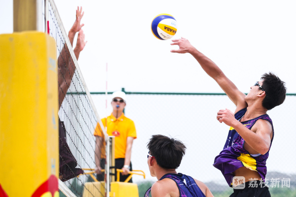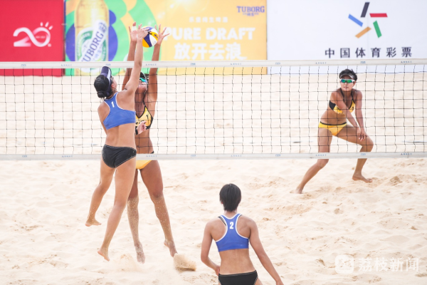 沙滩排球是一项风靡世界、充满激情与活力的奥运体育项目,融体育、时尚、自然于一体。记者在现场看到,来自各地的运动健将在细软的沙滩上奔跑、跳跃,与其他运动员一起配合默契地发球、接球、传球、扣球……空中飞舞的排球、激情拼搏的运动员、空气清新的自然环境,为现场观众带来了一场视觉盛宴。