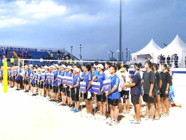 7月15日,2021全国沙滩排球锦标赛在盐城大洋湾热辣开赛,来自福建、海南、湖北、江苏、上海等省(市、区)的 74 对沙排组合参赛,选手们在 4 天时间里展开充满激情与活力的比拼,角逐全国冠军。国家体育总局排球运动管理中心书记顾国平、盐城市政府副市长费坚等出席本次赛事开幕式。