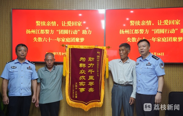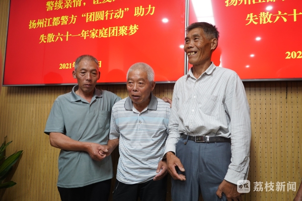 7月16日上午,在扬州市公安局江都分局真武派出所,看着已经分别61年的弟弟,70岁的王大哥、67岁的王二哥老泪纵横,带着遗憾离世的双亲,可以安息了,小弟回来了!
