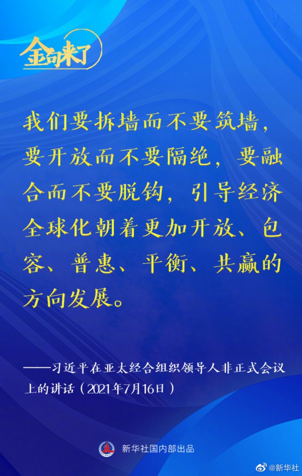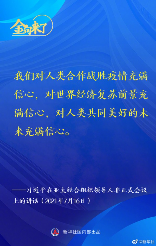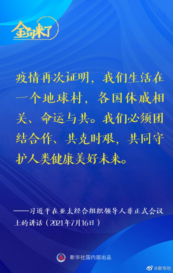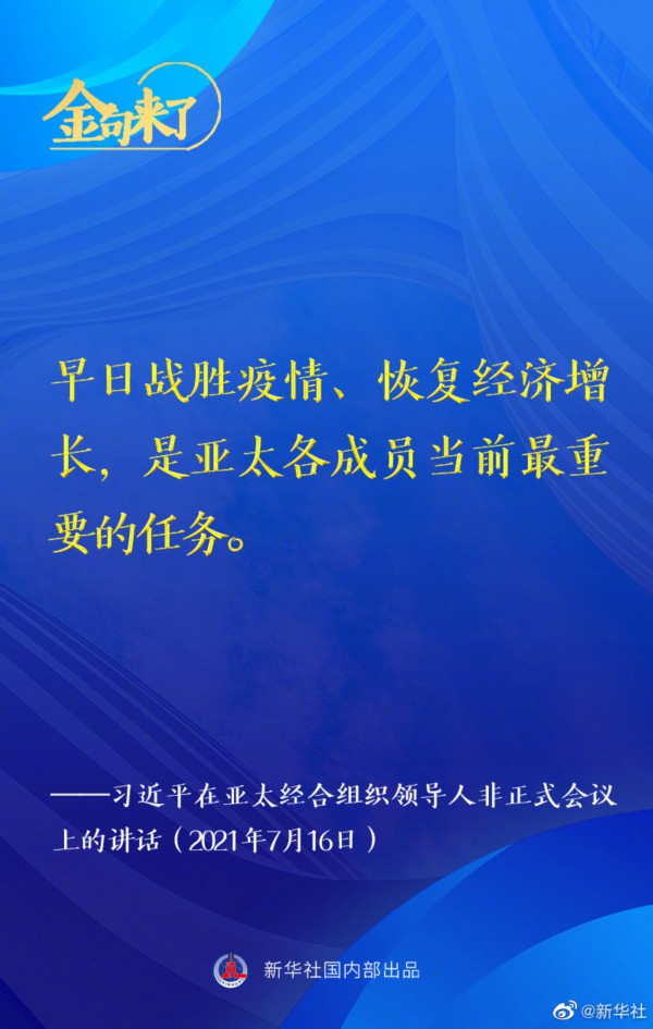 7月16日晚,国家主席习近平应邀在北京以视频方式出席亚太经合组织领导人非正式会议并发表讲话。一起来看金句↓