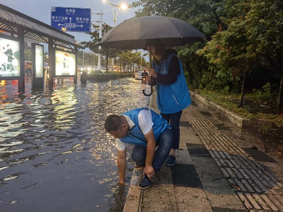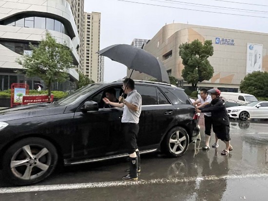 下午6点左右,一辆私家车行驶至邗江区新盛街道新盛社区绿杨路时,突然熄火趴窝,急得车主吴先生直跺脚,不知如何是好。此时,不远处正在参与安全巡查的新盛社区党总支书记马志超发现这一情况,立即喊来附近物业工作人员,一起帮吴先生将车辆推出积水路段,靠边等待救援。马志超说,由于暴雨下得急,他们发动所有社区网格员,沉入各自网格,排查安全隐患,尽量降低暴雨对居民的影响。