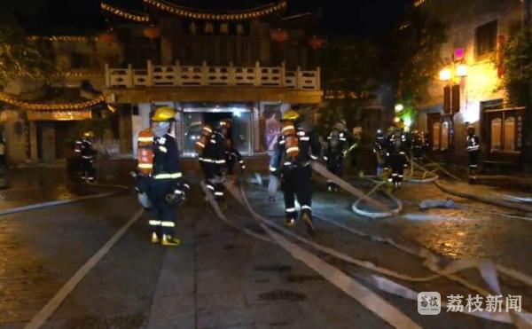昨天晚上十点多,随着阵阵烟雾腾空而起,古城火灾拉动演练正式开始。考虑到东关街道路狭窄不能通行大型消防车,消防员利用吉普车搭载手抬泵,到东关街主路,铺设水带、架设水枪。随后,增援到场的消防员从东南西北四个方向,同时前往东关戏台,架设水枪,防止火势蔓延至周边建筑。