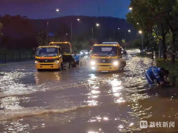 在昨天的降水中,受影响程度紧随其后的,则是同样位于栖霞区的仙林街道杉湖社区站点,降水达到79.3毫米,在该片区的天工路上,因为大量积水,部分车辆在水中熄火,水深已超过小腿。