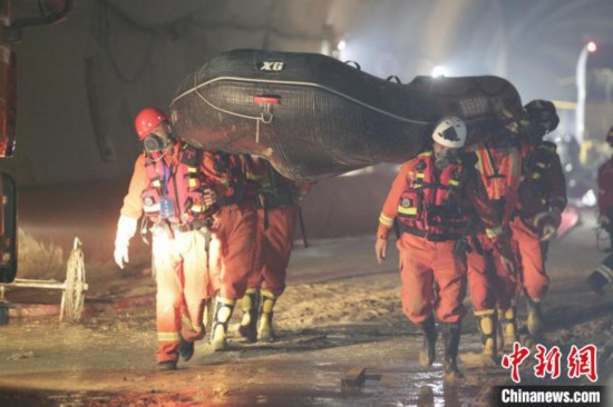 救援人员正在石景山隧道内展开救援。 林振艺 摄