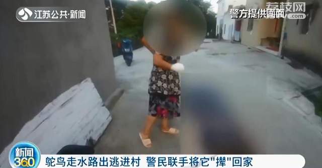 经过走访,民警了解到:这只鸵鸟应该是村子附近一家农场里饲养的。