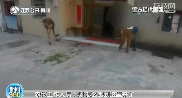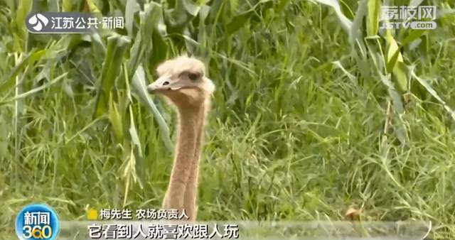 后来,大家一起把这只贪玩的鸵鸟撵回了家。记者找到饲养鸵鸟的那家农场。场里一共饲养了大大小小16只鸵鸟,当天出逃的是一只不到两岁的母鸵鸟:“当天早晨它到河里洗澡的,然后从从河边游上去了。它不咬人,看到人就喜欢跟人玩。现在它出不去了,农场周围全部都扎好了。”负责人梅先生说。