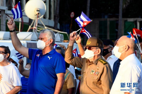 约10万民众17日聚集在古巴首都哈瓦那海滨大道一处广场举行爱国集会。古巴革命领袖劳尔·卡斯特罗、迪亚斯-卡内尔和其他党、政府以及社会群众组织领导人出席集会。迪亚斯-卡内尔当天发表讲话时做出上述表态,并同时号召民众团结一致,抵御外部势力干涉。