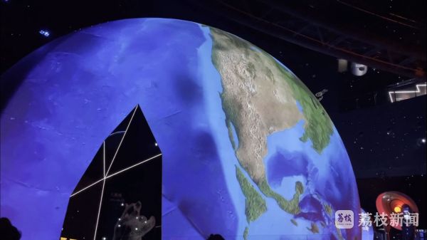 “家园”展区一侧,一颗巨大的“漂浮星球”首先吸引了记者的目光,原来这是天文馆最火的网红“打卡点”——8K超高清多功能球幕影院。星球内,球幕呈现了天体、银河、星云等星空元素,全景展现了天体的运动、宇宙的变迁,市民还可以享受一把真正的“仰望星空”,躺在特制的座椅上,伴随着神秘悠远的音乐,变幻的星辰大海让人仿佛置身于宇宙之间,看尽浩瀚星河。