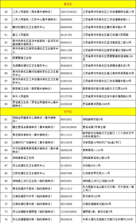 “常州市新冠疫苗接种点名单”7月16日最新版来了,大家赶紧收藏保存吧。