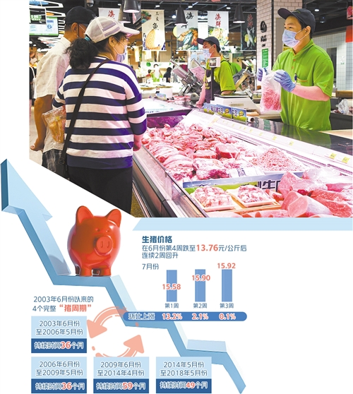 目前正运行第5轮周期。朱增勇告诉记者,本轮“猪周期”始于2018年6月份,叠加了非洲猪瘟疫情、新冠肺炎疫情、环保政策调整、生猪产品调运政策调整和生产周期性因素,与前几个周期有极大不同之处。在非洲猪瘟疫情冲击下,2020年我国生猪出栏量较2017年锐减了25%,经过不懈努力,产能已恢复到正常水平,6月份能繁母猪存栏已超过2017年水平。正是因为生猪供应充裕,才导致今年价格持续下跌。