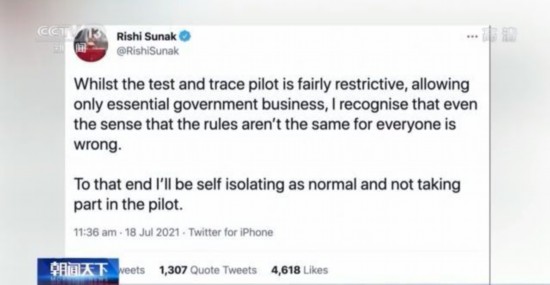 苏纳克则通过社交媒体发文,承认最初的决定不妥,称他将和其他人一样进行自我隔离。