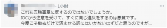 有日本网友称,“这张图是不是也违反了奥林匹克宪章?明明刚收到国际奥委会(IOC)的警告,却马上重蹈覆辙,性质恶劣。我认为这回不会让(韩方)撤下该图就能了事。”↓