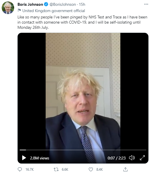 值得注意的是,解封前一天,英国首相约翰逊周日(18日)曾在其推特上发布相关视频。路透社19日另一则报道显示,视频中的约翰逊告知了民众自己因接触新冠确诊者从而需要隔离的消息。此外他提醒民众保持谨慎,并表达了对疫苗保护整个国家的信心,即使该国的新冠确诊数字仍在增加。