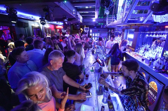 19日凌晨,英国利兹市,民众在酒吧狂欢。