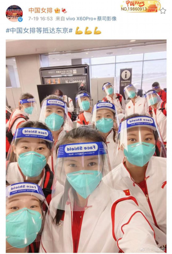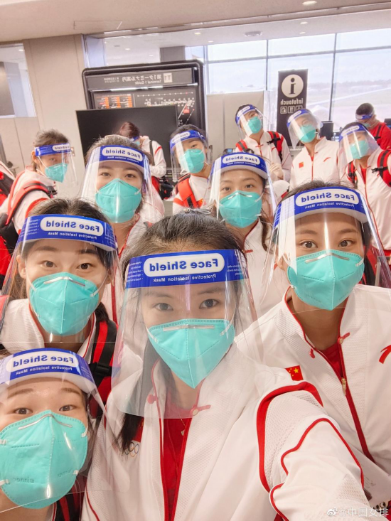 与此同时,中国女排官方微博也晒出了姑娘们抵达东京后的第一张自拍照。↓