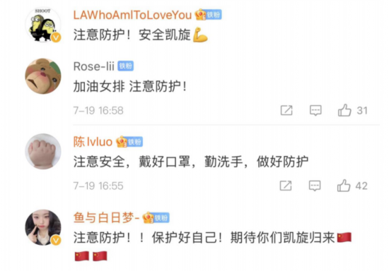 看到中国女排抵达东京的消息,不少网友为女排姑娘们加油,同时叮嘱他们“注意防护”。↓