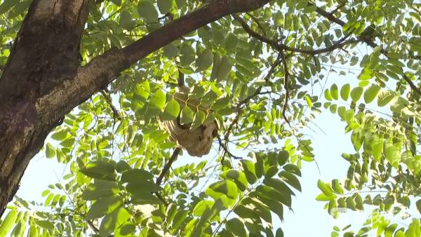 记者在现场看到,除了香樟树树枝可能出现断裂产生安全隐患外,在这棵树上还有三个大型马蜂窝直接影响到居民的正常生活。