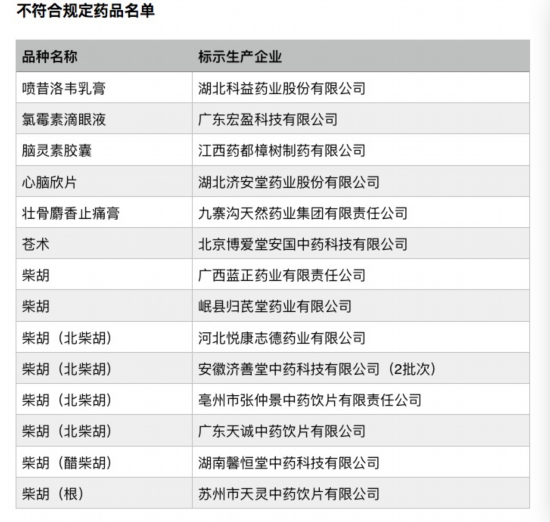 7月19日,国家药监局发布通告显示,标示为安徽济善堂中药科技有限公司等14家企业生产的柴胡(北柴胡)等15批次药品不符合规定。国家药监局要求相关省级药品监督管理部门组织,对相关企业和单位生产销售假劣药品的违法行为立案调查。