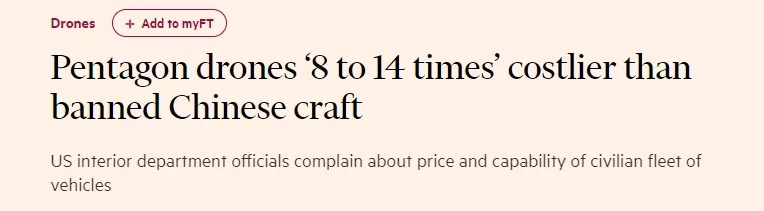 报道称,美国国内对于小型无人机的成本及有效性的吐槽,显示出美国虽然试图摆脱中国技术,却依然拿不出本土的替代产品,因而面临着种种困境。
