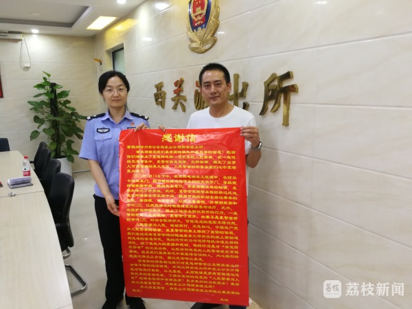 “多亏了夏警官为我妻子挡出一片安全区域,避免了二次伤害,并现场给予救助直到120急救车前来。”7月17日下午,徐州市民陈先生为泉山公安分局西关派出所送去感谢信和锦旗,感谢民警夏道坤及时救助自己出车祸的妻子。