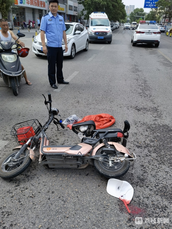 7月13日14时多,陈先生的妻子刘女士骑着电动车行驶到纺织东路阿尔卡迪亚小区东门附近时,路边一辆停着的轿车忽然打开车门。刘女士紧急避让过程中摔倒,头部受伤,血流不止。“我妻子说,当时她短暂失去意识,等清醒时,就看到一名警察在安慰她并维持现场秩序。”陈先生说,妻子清醒后给他打了电话,自己赶到现场时,已经是十几分钟后。“当时看到一辆警车停在道路中央,挡出一片安全区域,急救车也刚到,正在救人。”