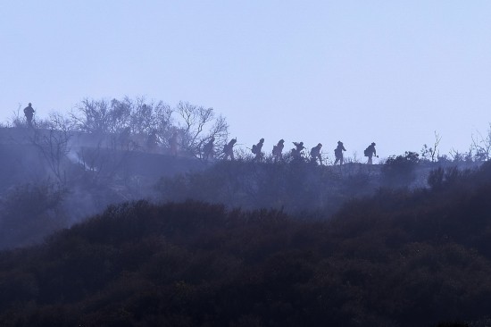 烟雾笼罩下的加利福尼亚州山火救援人员
