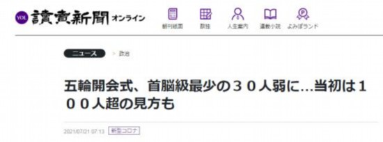 《读卖新闻》援引日本外务省的话称,2012年英国伦敦奥运会开幕式有约80名外国要人出席,2016年巴西里约热内卢奥运会举办时,巴西国内受传染病与政局不稳定所扰,但仍有约40名外国要人出席了开幕式。日本外务省原本预计东京奥运会开幕式将有超过100名外国要人到场,但因日本国内新冠疫情形势严峻等原因,多名外国要人接连表示将放弃出席东京奥运会,出席本届东京奥运会开幕式的外国首脑级人物与国际机构最高负责人不足30名。