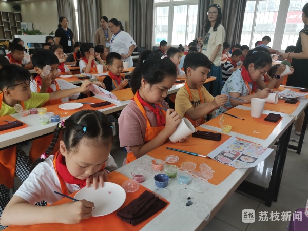 “孩子们,我们今天一起学习陶艺。”7月19日上午10时30分,在陶艺课上,老师们向学生讲解了如何在陶瓷上作画、作画时注意事项等知识,并引导孩子们自己动手在杯子上或盘子上绘画,表达热爱祖国、热爱家乡的浓厚感情。孩子们听得认认真真,脸上露出了甜美的微笑。“和小朋友们一起创作,以画传情,感觉很有意义,很快乐,我很喜欢这里。”托管班学生高兴地说道。