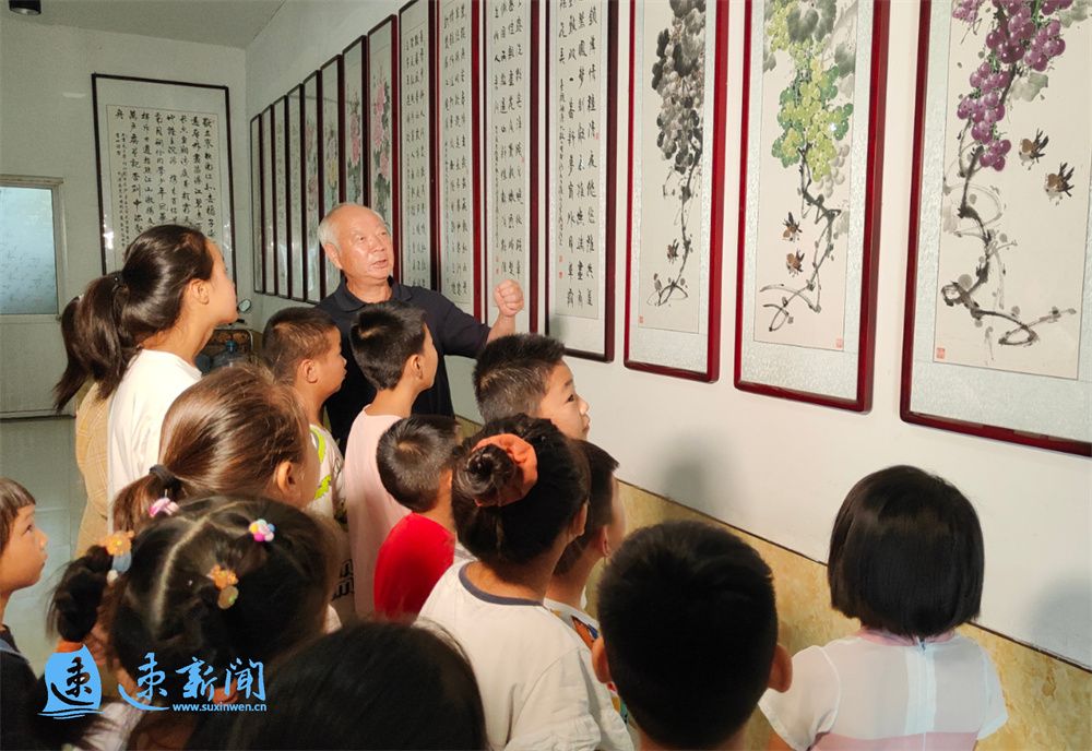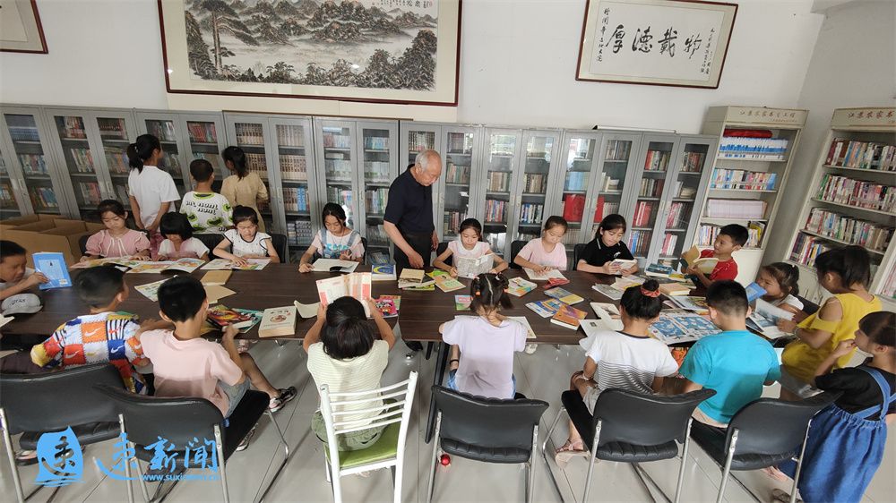 7月21日,沭阳县胡集镇一批留守儿童在该镇农民王开华自费创办的文化大院学习中国传统文化知识。王开华今年68岁,在2013年利用自家的三层楼房,自筹资金百万余元建成1600平方米的文化大院,专注于组织开展留守儿童公益关爱活动,通过志愿者参与,开设爱心课堂、爱心暑托班, 为他们传授书法绘画、音乐舞蹈、非遗文化、国学以及安全卫生方面的知识,受到广泛好评。