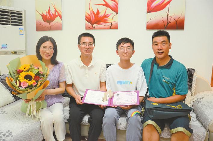 7月18日,孙远航在位于阜宁县阜城镇的家中,收到了盐城邮政投递员送来了北京大学信息与计算科学专业的录取通知书。