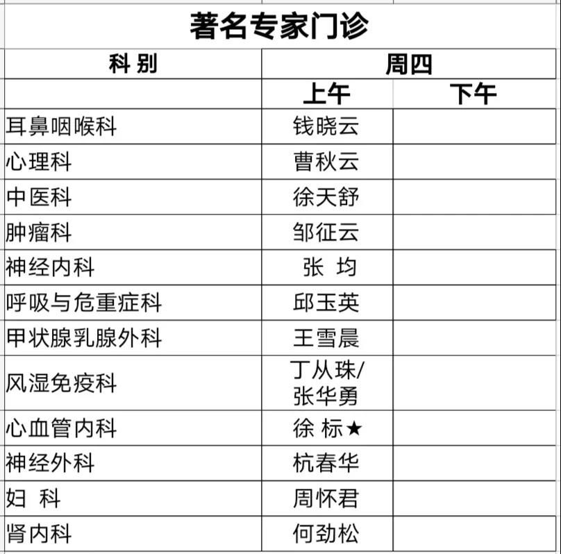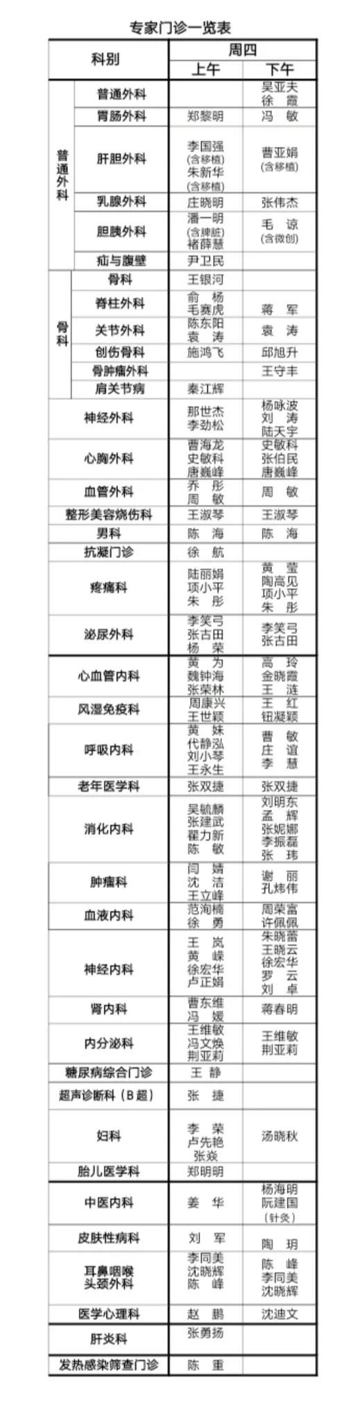 附2:南京鼓楼医院江北国际医院7月22日(周四)江北院区专家门诊、著名专家门诊一览表