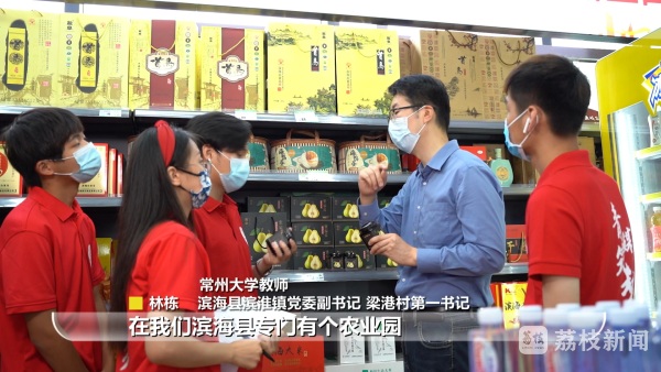 该专营店是林栋半年前参与设计并规划的,是长三角地区首个落户高铁站的扶贫产品专营店。在门店货架上,除了滨海大米、白首乌等产品,还有滨海香肠、捆蹄、小花生、菜籽油、海蜇、麻虾酱、海鸭蛋、五谷杂粮等特色农产品。旅客在这里的每一笔消费,不仅能把滨海的特产带回家,还能亲力亲为践行一次消费扶贫行动。