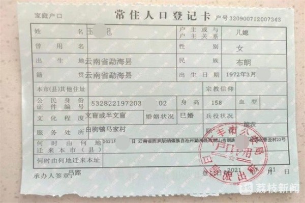 早在15年前,时年35岁的玉某甩(女,布朗族,原云南省西双版纳州勐海县布朗山乡人)经朋友介绍嫁给时年38岁的大丰区白驹镇马家村村民王某所。由于当时玉某甩的户口在迁移时手续不慎丢失,导致玉某甩成了现居住地的“黑户”,至今一直无法落户,无户口也无法在现居住地派出所办理身份证,就连农村合作医疗、社保卡等都不方便办理。