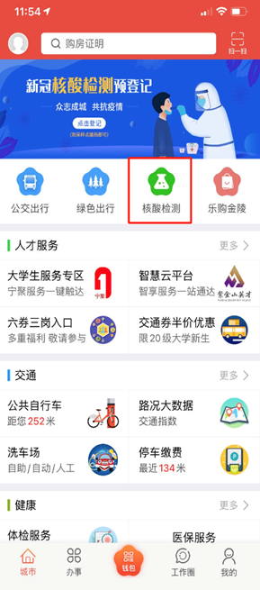 我苏网讯 根据南京市新型冠状病毒肺炎疫情联防联控工作指挥部的统一部署,为尽快实现全市全员核酸检测的目标,“我的南京”APP紧急上线了核酸检测预登记入口。点击首页核酸检测按钮进入页面,根据页面提示填写身份信息、选择所属地区、填写联系电话、设置密码提交后即可完成注册。登录后可进行核酸检测预约、结果查询等操作。广大市民不用到现场扫码登记,在家中或者在前往核酸检测点的途中,即可通过登录“我的南京”APP进行核酸检测预约,预约成功后,在检测现场向工作人员出示预约码进行核酸检测。核酸检测的结果也可以通过登录“我的南京”APP进行查询。