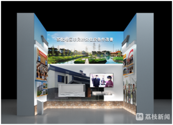 在展馆尾厅,宿迁市宿豫区来龙镇白鹿湖新型农村社区投影沙盘,集中展示了该社区的整体风貌、产业布局、农房改善、富民增收等内容,经过两年多努力,苏北地区农民住房条件得到显著改善,基础设施和公共服务设施水平明显提升。