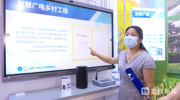展馆内,一座应急广播终端吸引参观者的注意,江苏有线在省广电总局的指导下,完成了120366组应急广播终端的建设,实现了全省15360个行政村应急广播系统全覆盖,打通了基层信息发布进村入户的最后一公里。除了提供日常宣传和应急信息快速发布服务,在全省疫情防控工作中也发挥了重要作用。