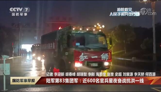 截至发稿时,中部战区陆军第83集团军共有近600名官兵坚守抗洪救灾一线。