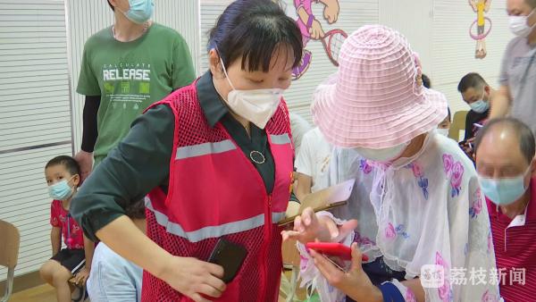 在检测点里里外外跑了一上午,许艾芳刚坐下喝了一口水,就又有新的情况发生。原来,在核酸检测之前,须通过微信小程序进行身份确认,然而,此时现场的大多数老年人都不太会使用手机,许艾芳和同事只能手把手帮老人进行操作,如果老人没带手机,她们还需要用自己的手机帮老人确认。