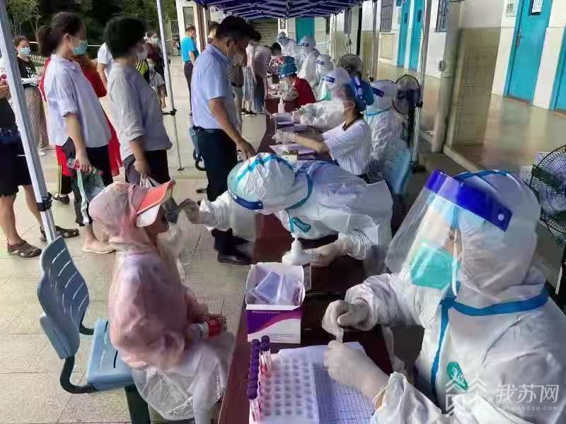 7月22日,镇江市调派首支新冠病毒核酸应急采样队20人赴南京玄武区,分别在红山社区科利华中学、月苑小学及十三中红山分校3个采样点支援。他们中有49岁的中共党员,也有25岁的基层护士。防护服、面罩、N95口罩、鞋套……此次采样队每位成员都配足了装备。从早上7点半出发,9点钟抵达南京后,每位队员都投入了紧张的工作中,连续高强度的工作了13个小时,采样队完成了他们的任务,在7月23日返回镇江。
