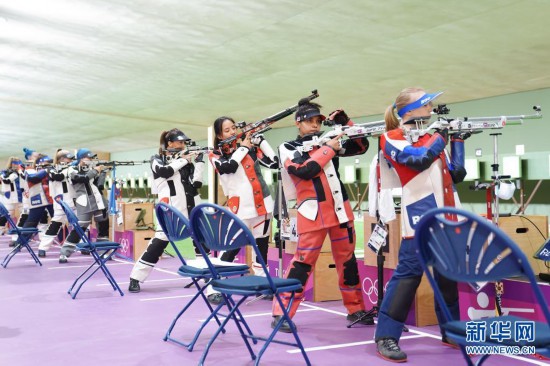 7月23日,中国射击队队员王璐瑶(右三)在训练中。