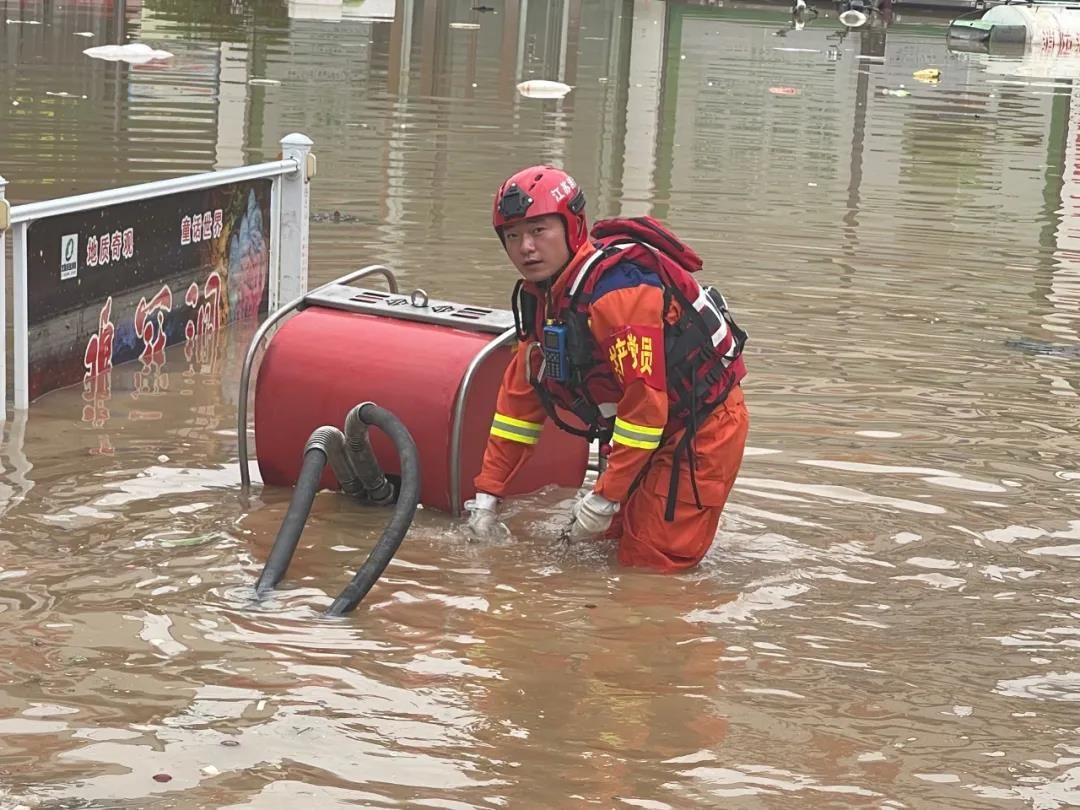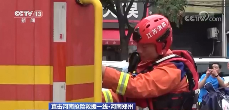 ▲央视现场报道海安消防抗洪突击队在郑州抢险排涝