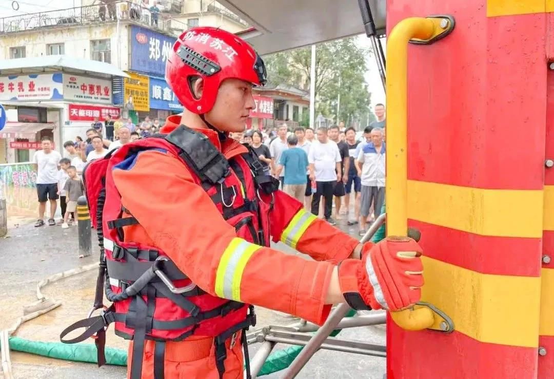 “可以说是全员报名,最执着的队员是直接堵在会议室门口,非要参与此次行动。”该站政治指导员蔡海扬透露,经过综合考虑,决定出动1辆远程供水泵组车以及王威武、王鑫、李鑫宇、马银鹏、周志刚5名消防队员组成海安消防抗洪突击队,由该站副站长王威武带队奔赴郑州参与现场处置,“这5人都是‘95’后,最小的还是个‘00’后,均是队里精干力量!”