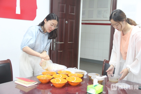 “刚做好的胡辣汤,大家快尝尝,是不是家里的味道。”今天(7月23日),扬州大学数学科学学院的教室里弥漫着胡辣汤独有的香味,学院辅导员赵婷婷老师亲手为三名河南籍学生带来家乡的味道,洪水虽无情,暖汤沁人心。