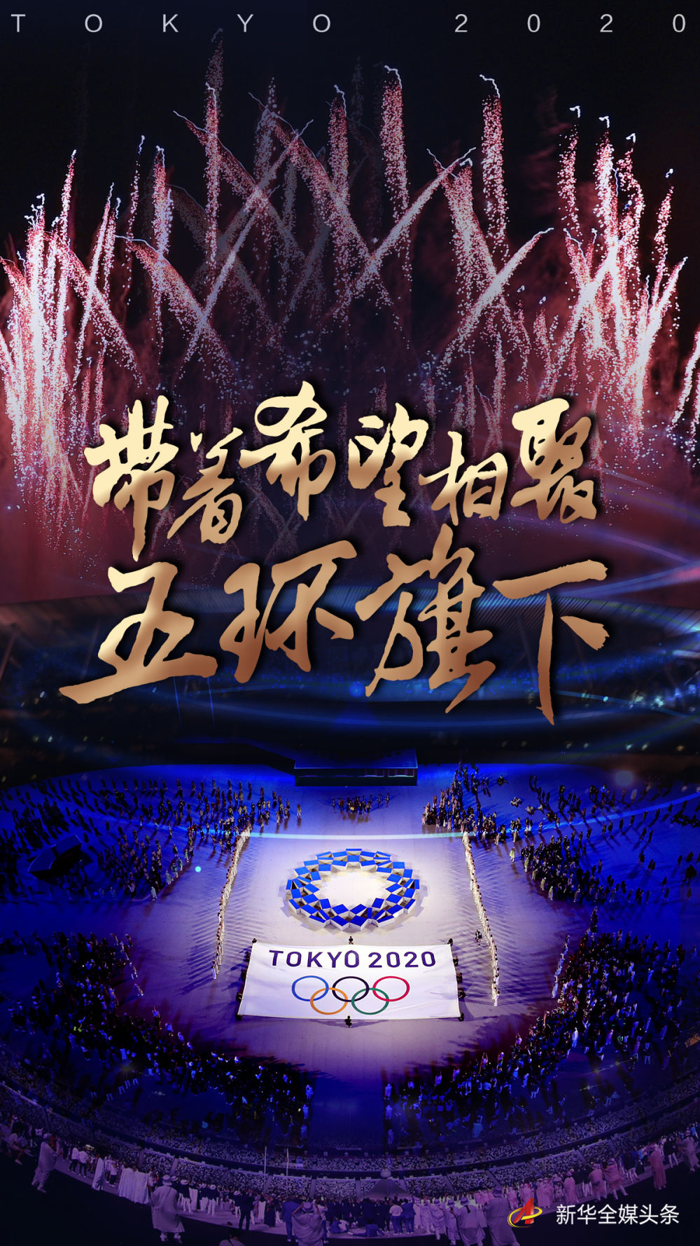一年之后,五环旗帜在东京新国立竞技场成功升起。